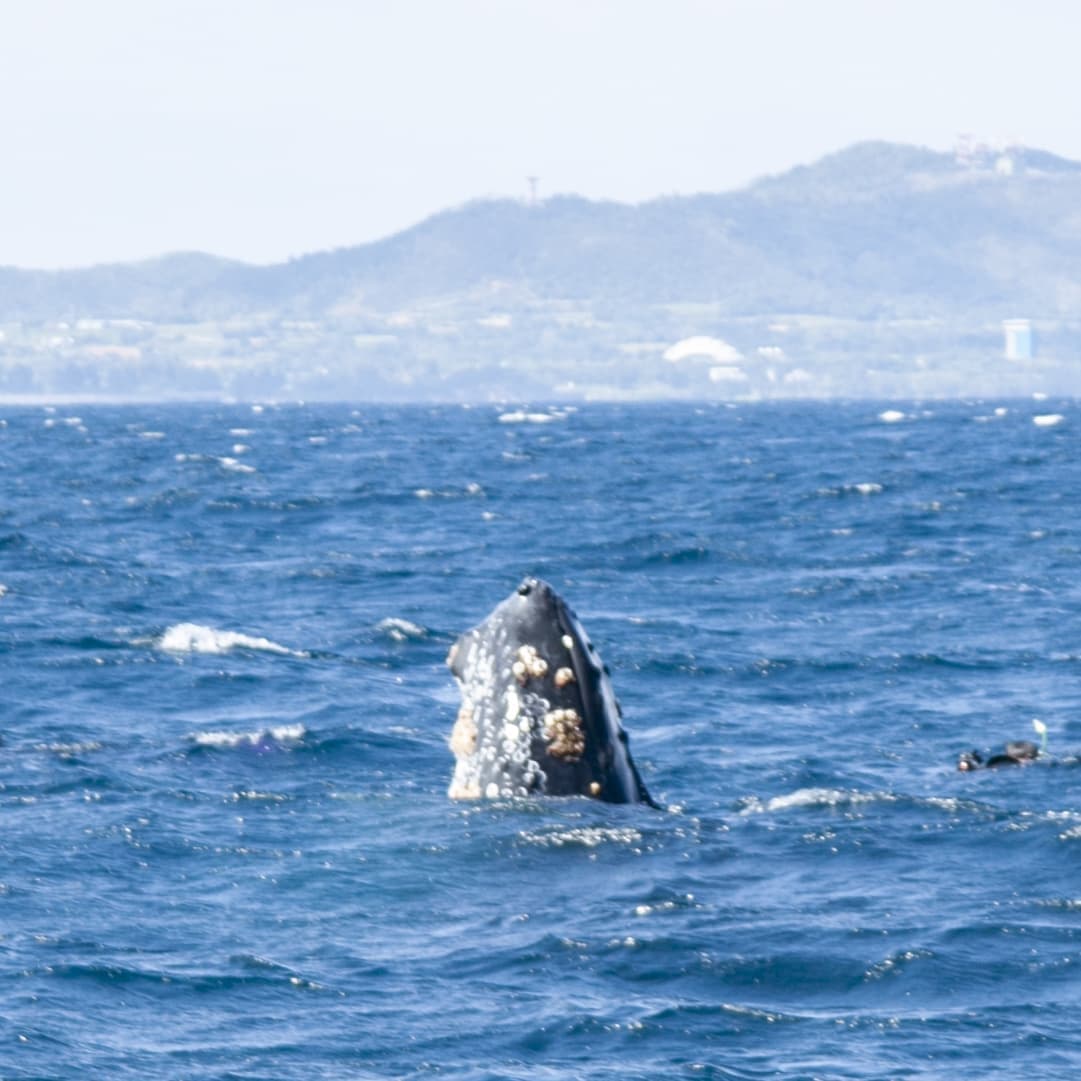 顔を水面にニョきっと出し、周りを見回す行動。ゲストの方でクジラと目が合った人もいらっしゃいますよ~。珍しい行動なので遭遇できたらラッキー。(スローモーションようにゆっくり行うので撮りやすい)
